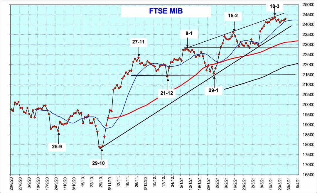 Siamo tornati ora non distante dai massimi dell’anno ( il MIB è attorno a 24300 e il DAX a 14750 punti circa).