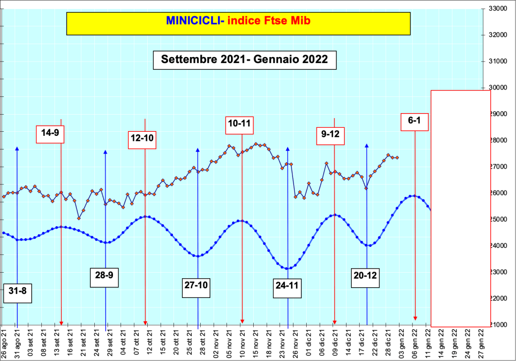 L’ONDA dei MINICICLI è dunque al RIBASSO indicativamente fino al … di Gennaio.