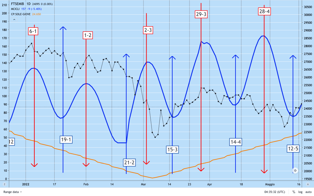 Non c’era solo l’ONDA dei MINICICLI che invertiva al RIALZO ma avevamo anche la CONGIUNZIONE SOLE-URANO, il PASSAGGIO di GIOVE in ARIETE, la RETROGRADAZIONE di MERCURIO (elementi planetari che dopo la discesa di inizio Maggio facevano appunto pensare ad una inversione).