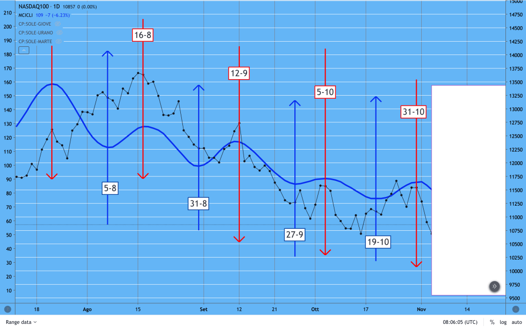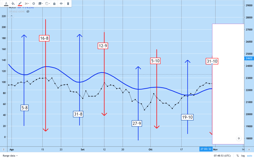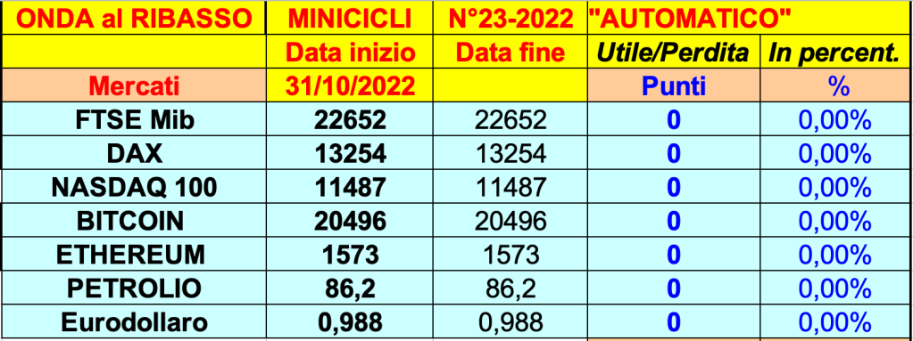 L’ONDA al RIALZO dei MINICICLI termina oggi 31 Ottobre, poi l’ONDA sarà al RIBASSO fino al … (la DATA è conosciuta in anticipo dagli ABBONATI).
