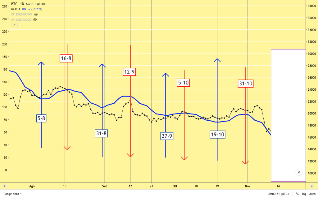 Abbiamo assistito ieri ad una forte ed improvvisa discesa su tutte le CRIPTOVALUTE, discesa che si è trovata sincronizzata all’ONDA dei MINICICLI.