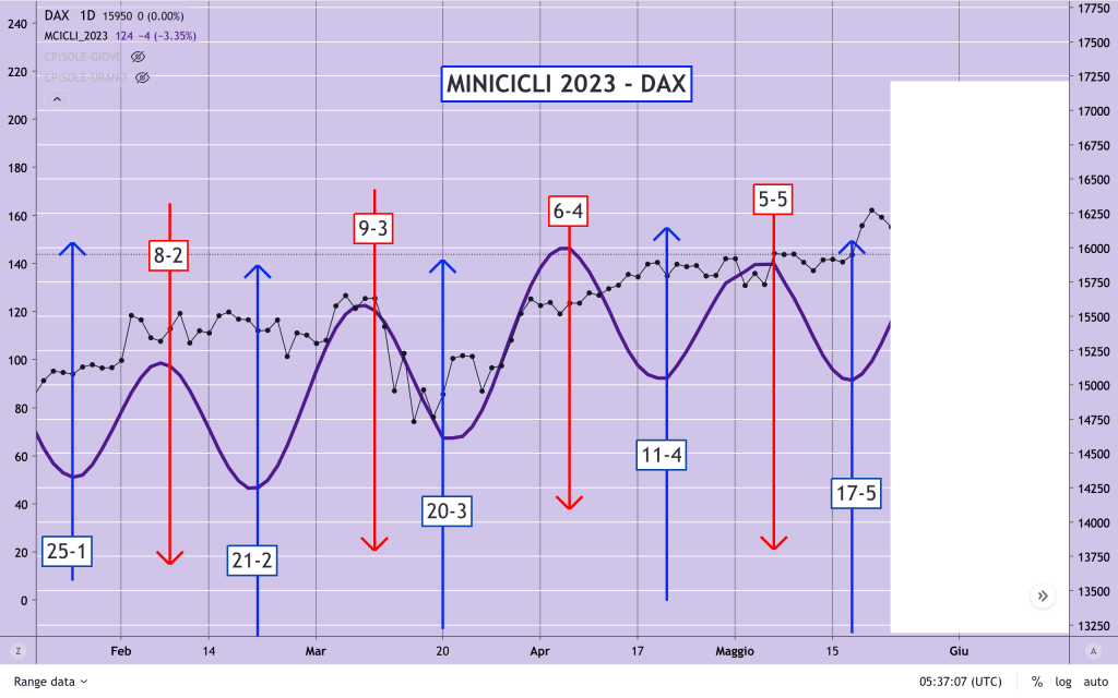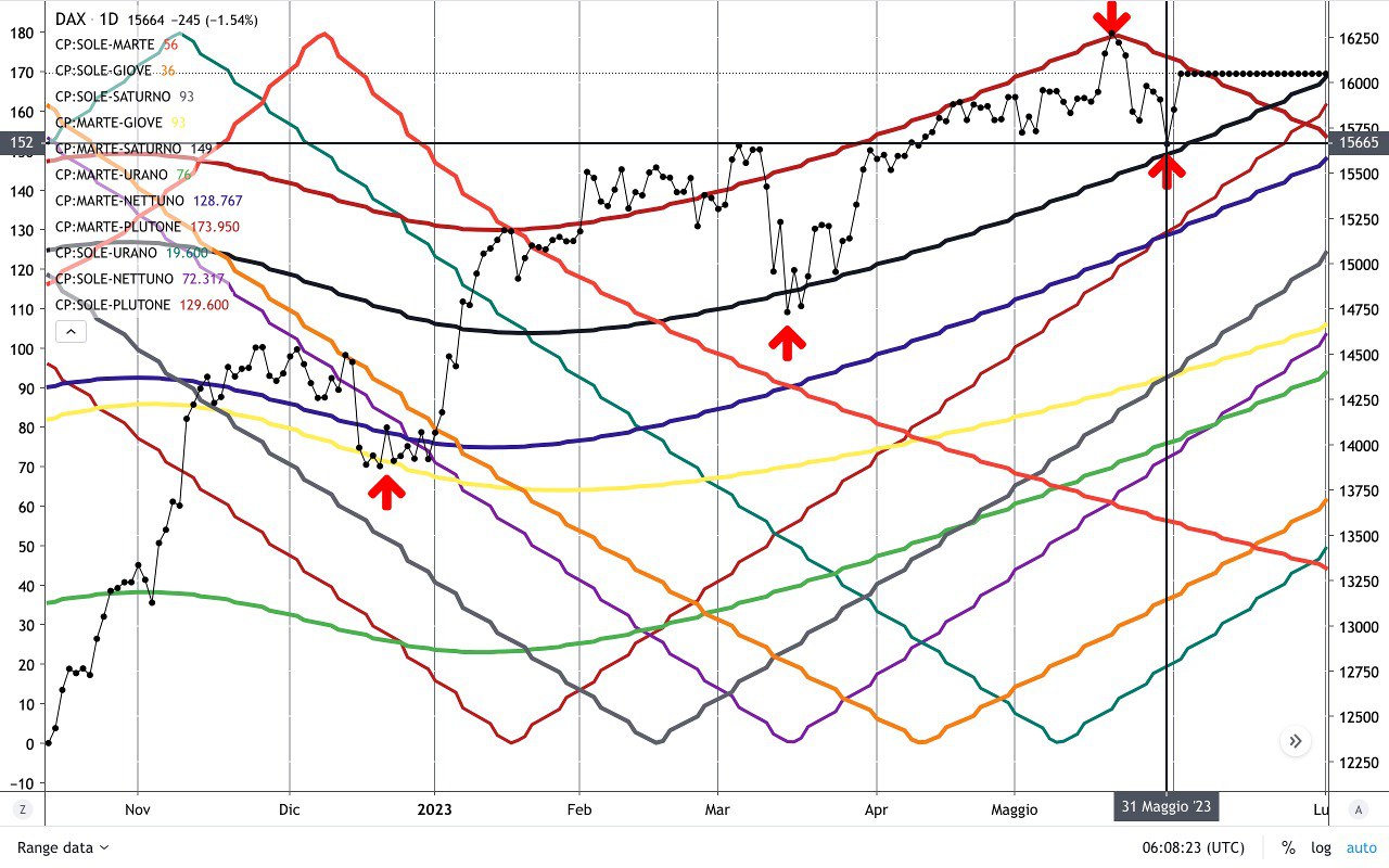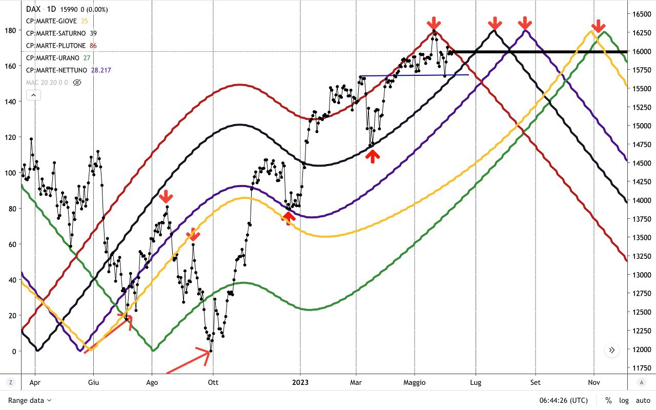 Qui sotto una visione dei soli CICLI di MARTE sull’indice DAX.