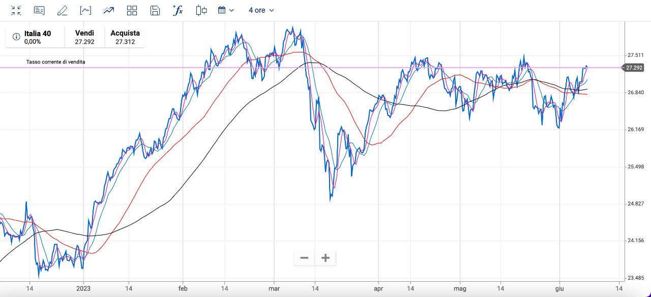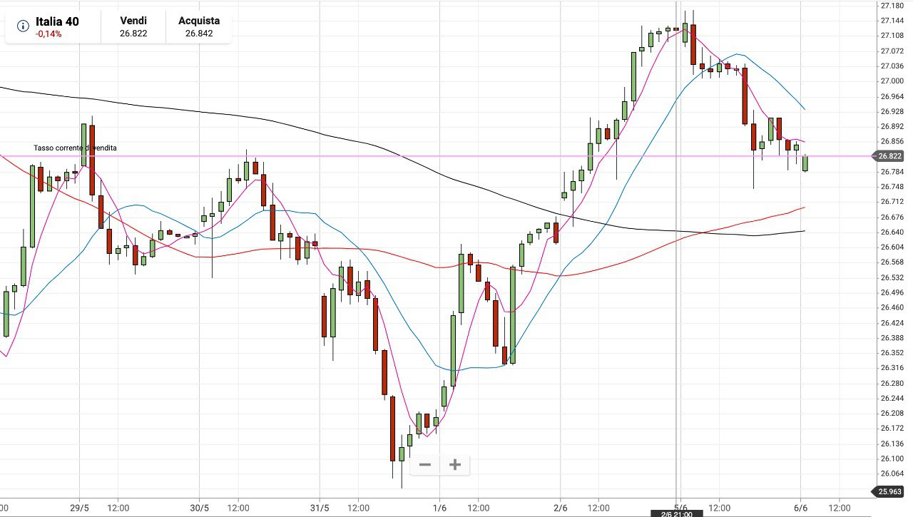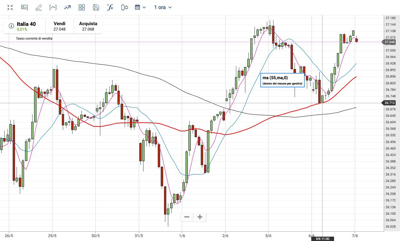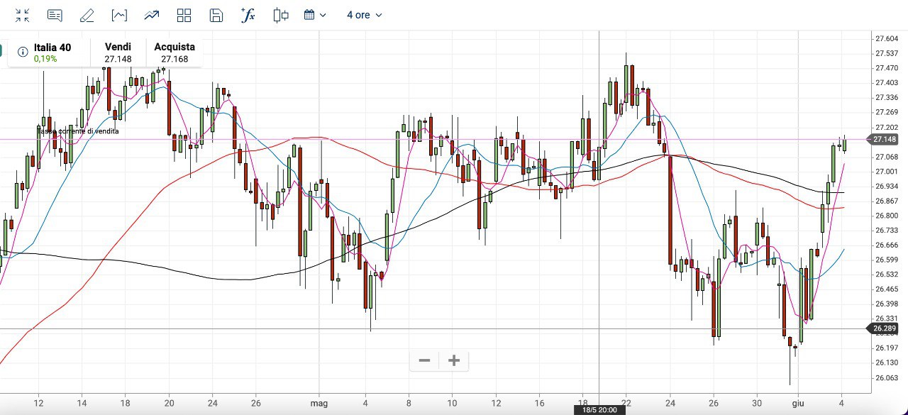 La risalita dai MINIMI poco sopra i 26000 punti dunque ha riportato il MIB sui valori di inizio Maggio.