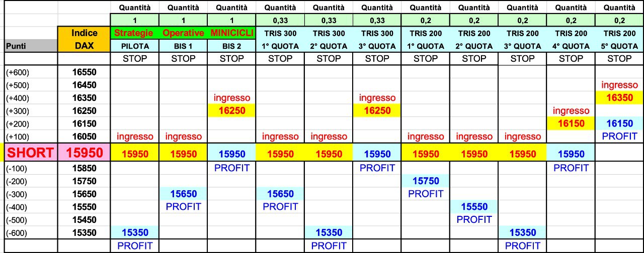 Qui sotto vi mostro anche la GRIGLIA del DAX, con le relative STRATEGIE.
