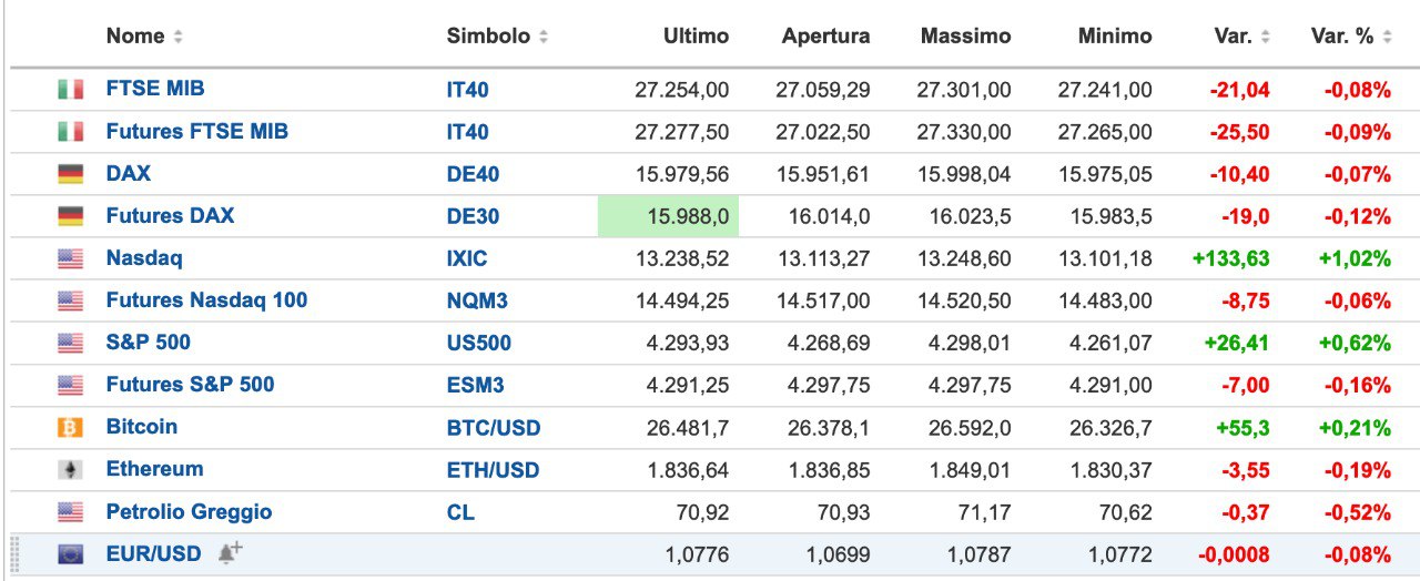 Stesso discorso ovviamente per il DAX (ora tra i 16050 e i 16100 punti).