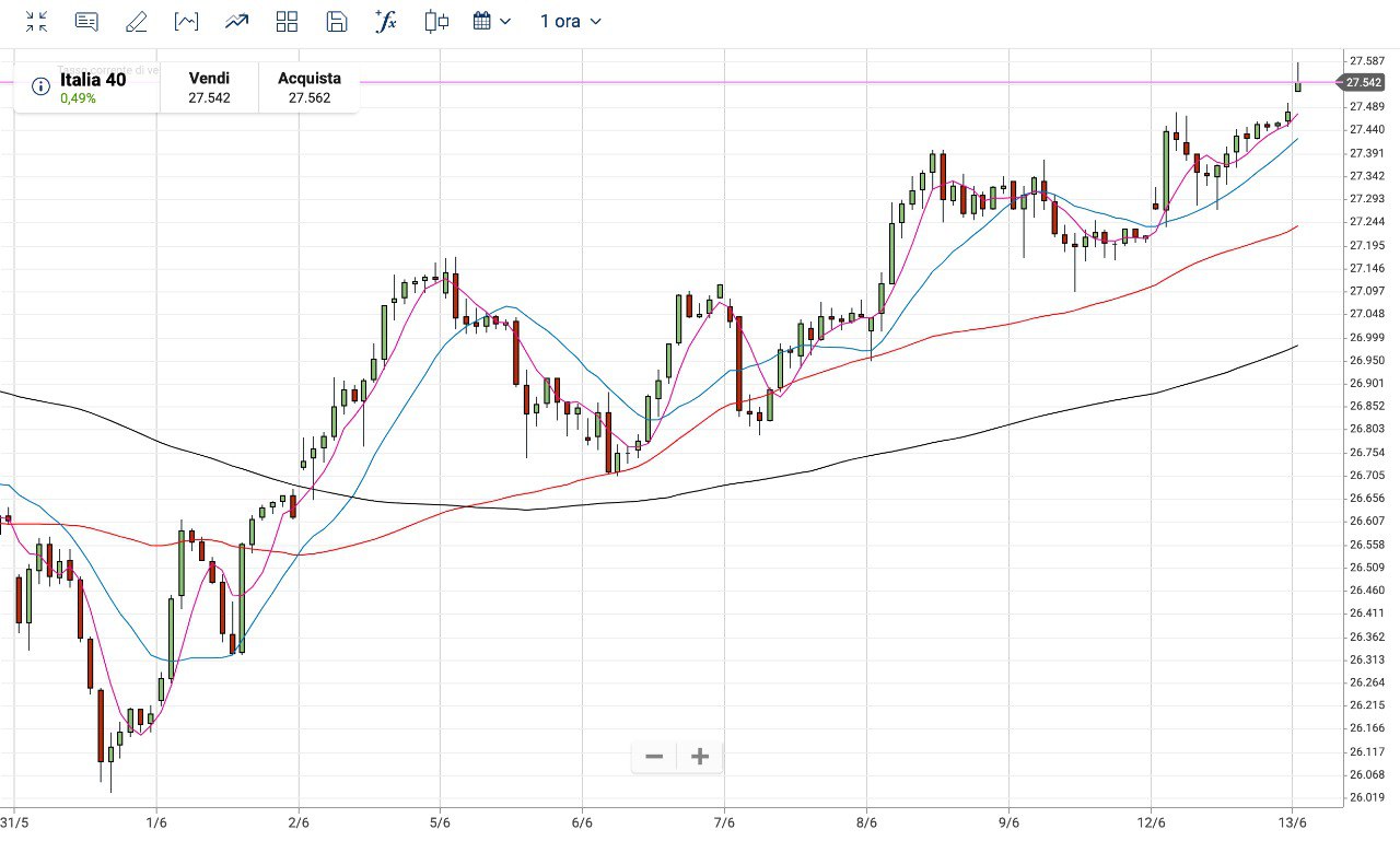 Per quanto riguarda i mercati la tendenza è rimasta rialzista e questa mattina abbiamo nuovamente un’apertura positiva, con il MIB Future a ridosso dei 27600 punti e il DAX che si muove attorno ai 16200 punti.
