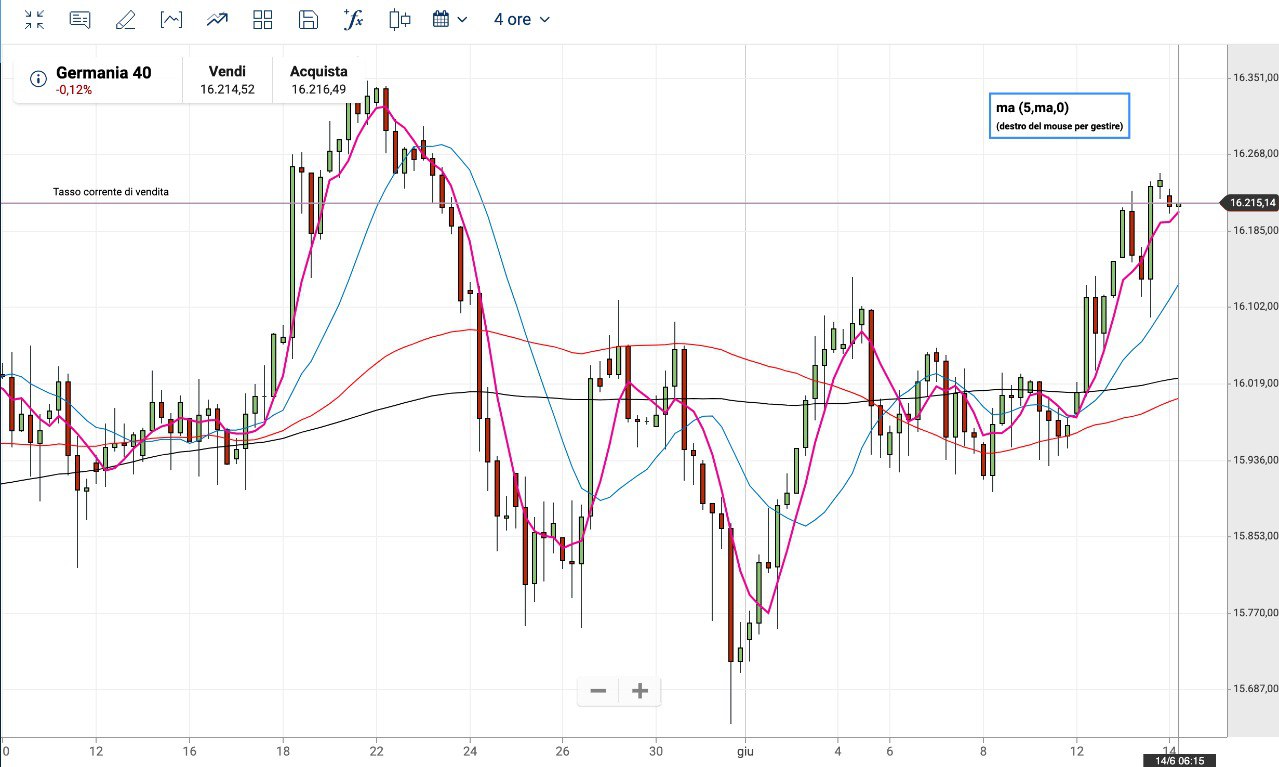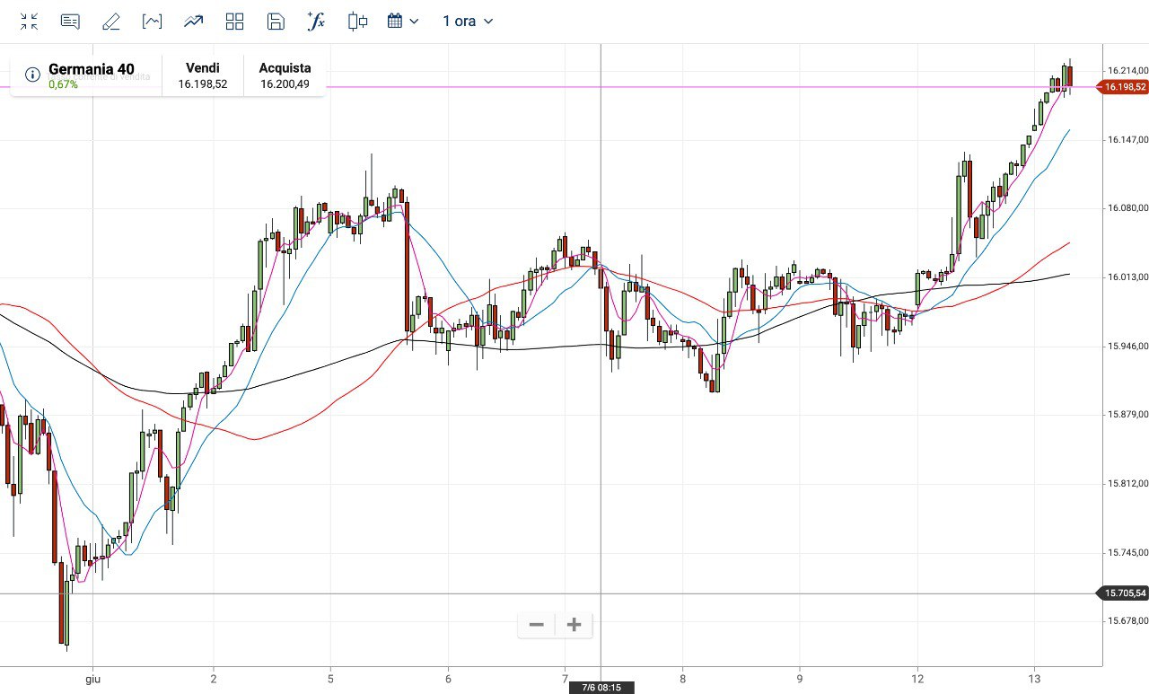 Uno sguardo anche al DAX, salito ieri verso i 16250 punti e ora attorno ai 16215 punti