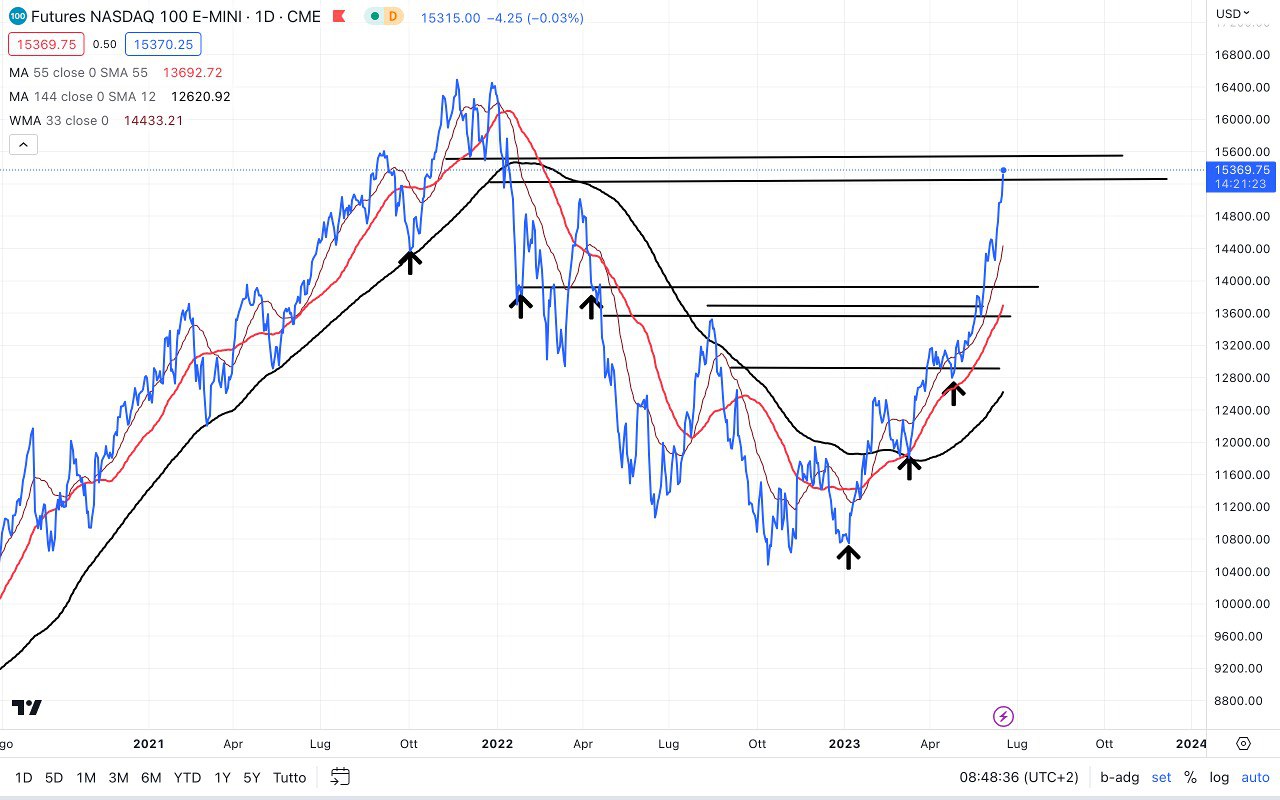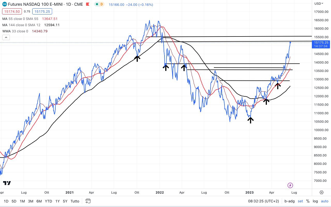 Un’occhiata anche alla straordinaria salita del NASDAQ americano.