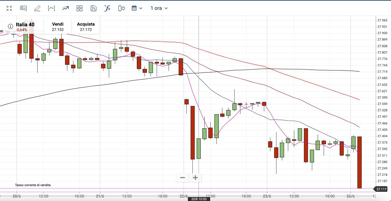 Questo intanto è il grafico del MIB FUTURE, che mostra un impulso al ribasso degli ultimi minuti.