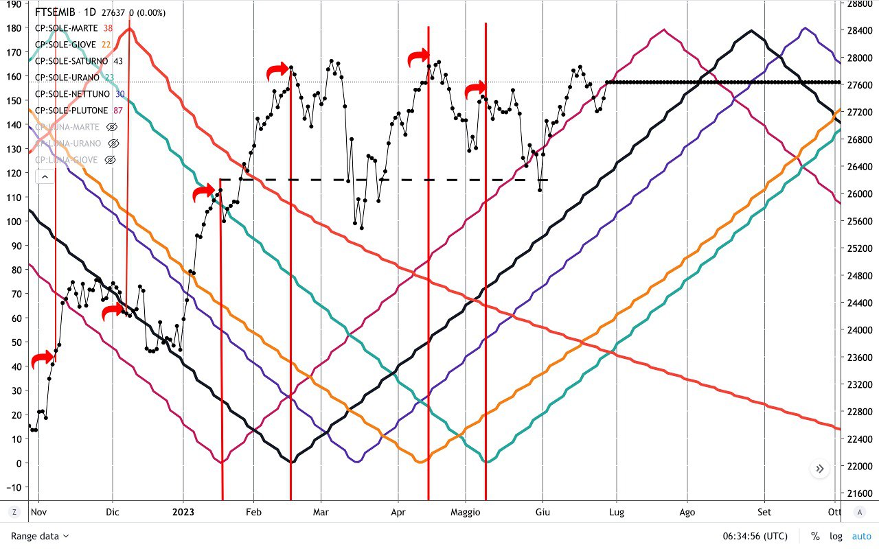 Sullo sfondo rimane la pericolosità della QUADRATURA MARTE-URANO, che potrebbe innescare movimenti violenti, benché il contesto di medio periodo rimanga tendenzialmente positivo dal punto di vista ciclico.