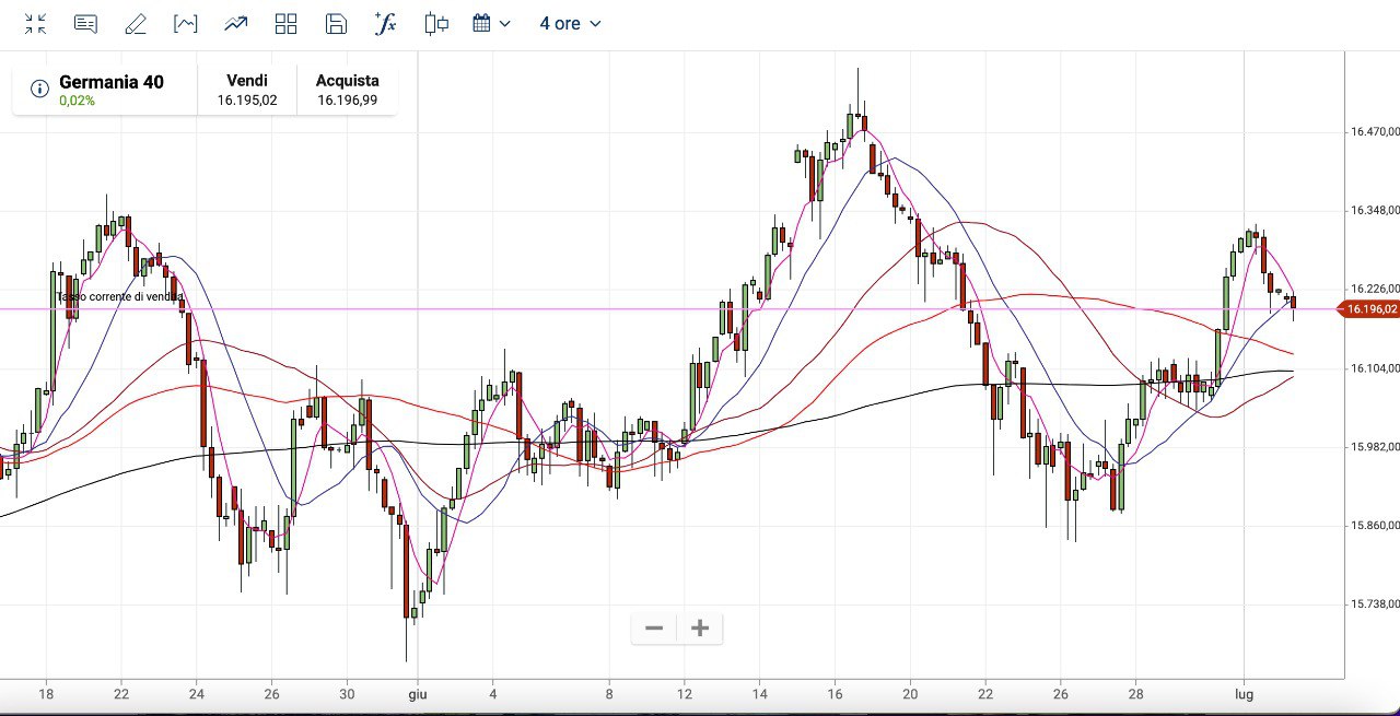 Dai massimi sopra i 16330 punti di ieri il DAX ha già iniziato un ritracciamento e si trova ora sotto i 16200 punti.