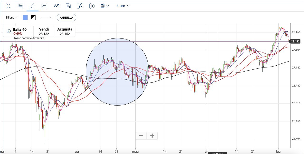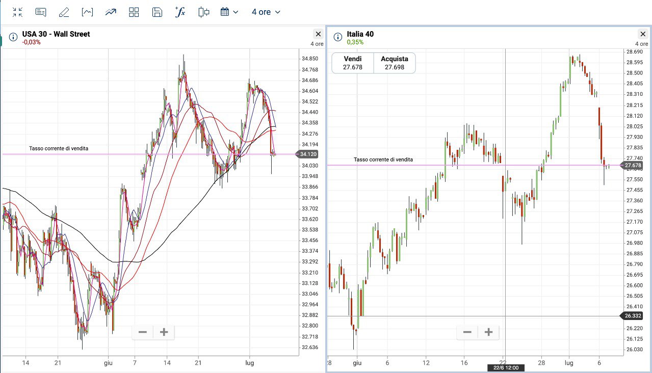 Nel grafico notate due movimenti al ribasso precedenti, di fine Maggio e di metà Giugno, e poi il movimento di ieri.