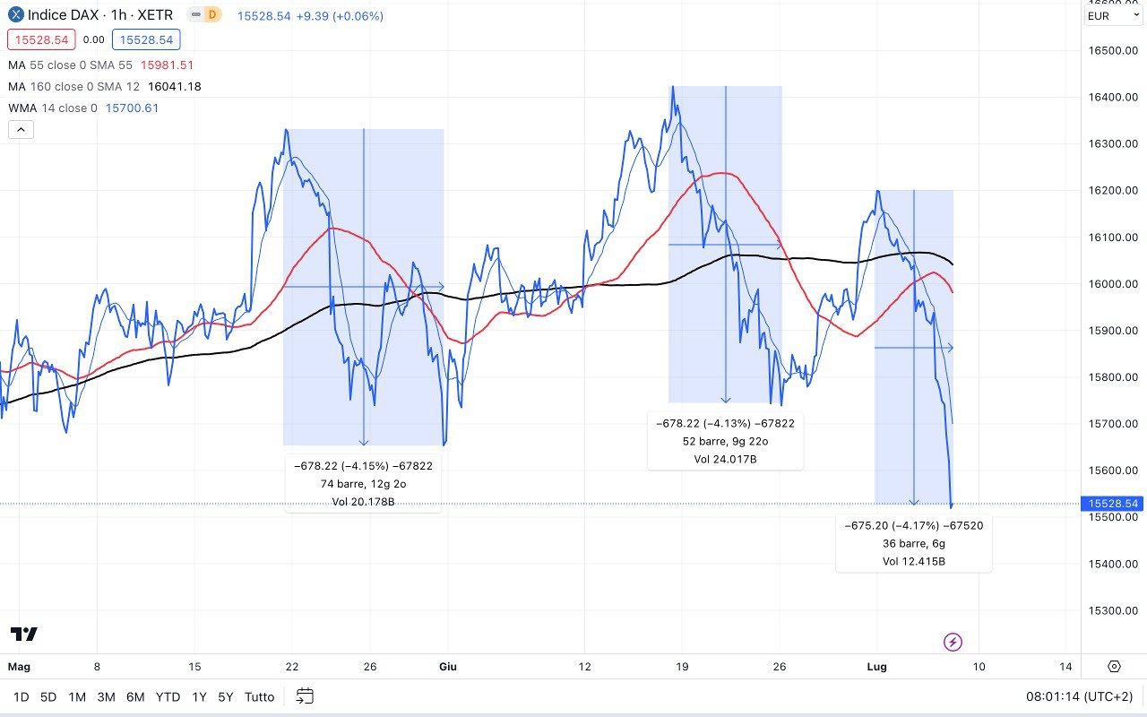 Potenzialmente, dunque, ci troviamo in un punto da cui il DAX può rimbalzare.