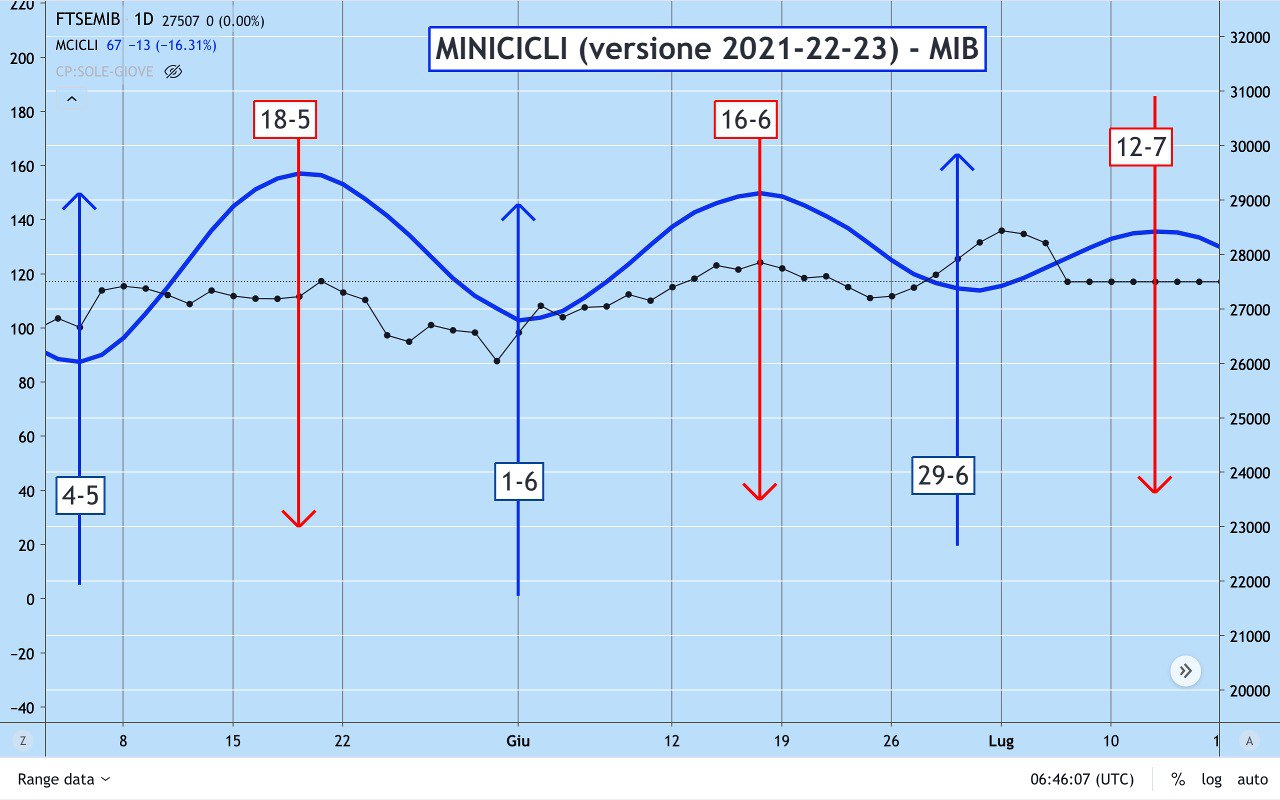 Tornando ai MINICICLI, l’ONDA al RIBASSO proseguirà fino al …. (la data è conosciuta in anticipo dagli ABBONATI).