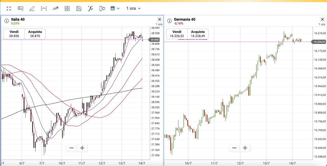 Il MIB in questo momento vale circa 28860 e il DAX 16225 punti.