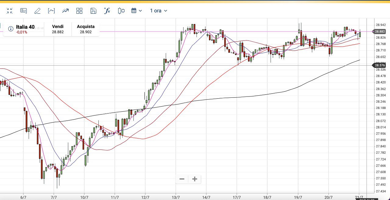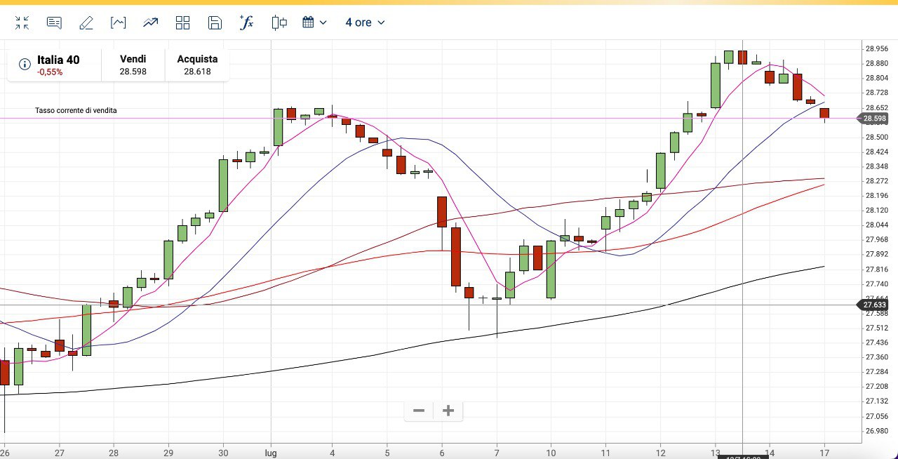 Ora il MIB italiano, poco sotto i 28900 punti.