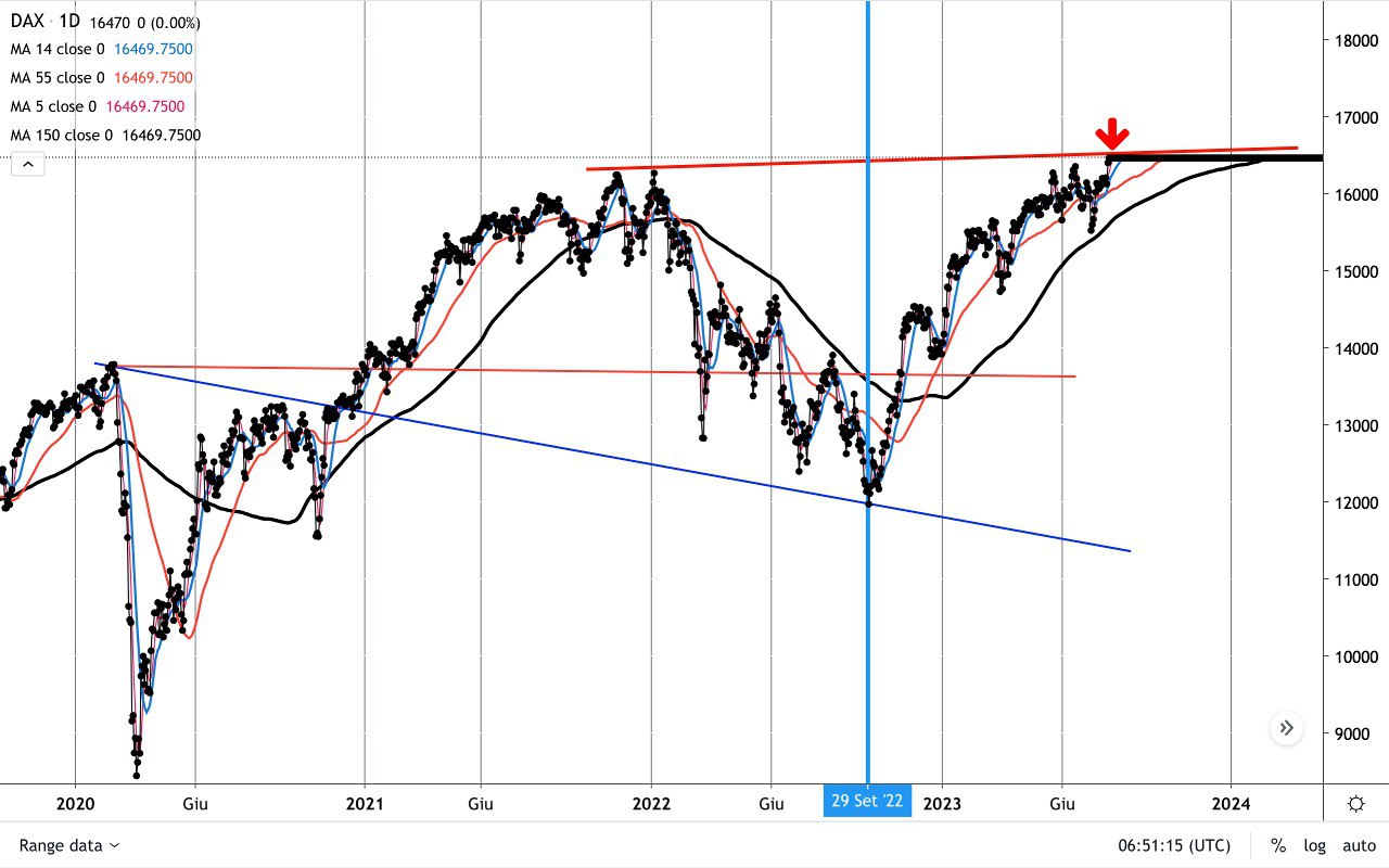 Vi mostro ora un interessante GRAFICO SETTIMANALE sull’INDICE DAX tedesco…