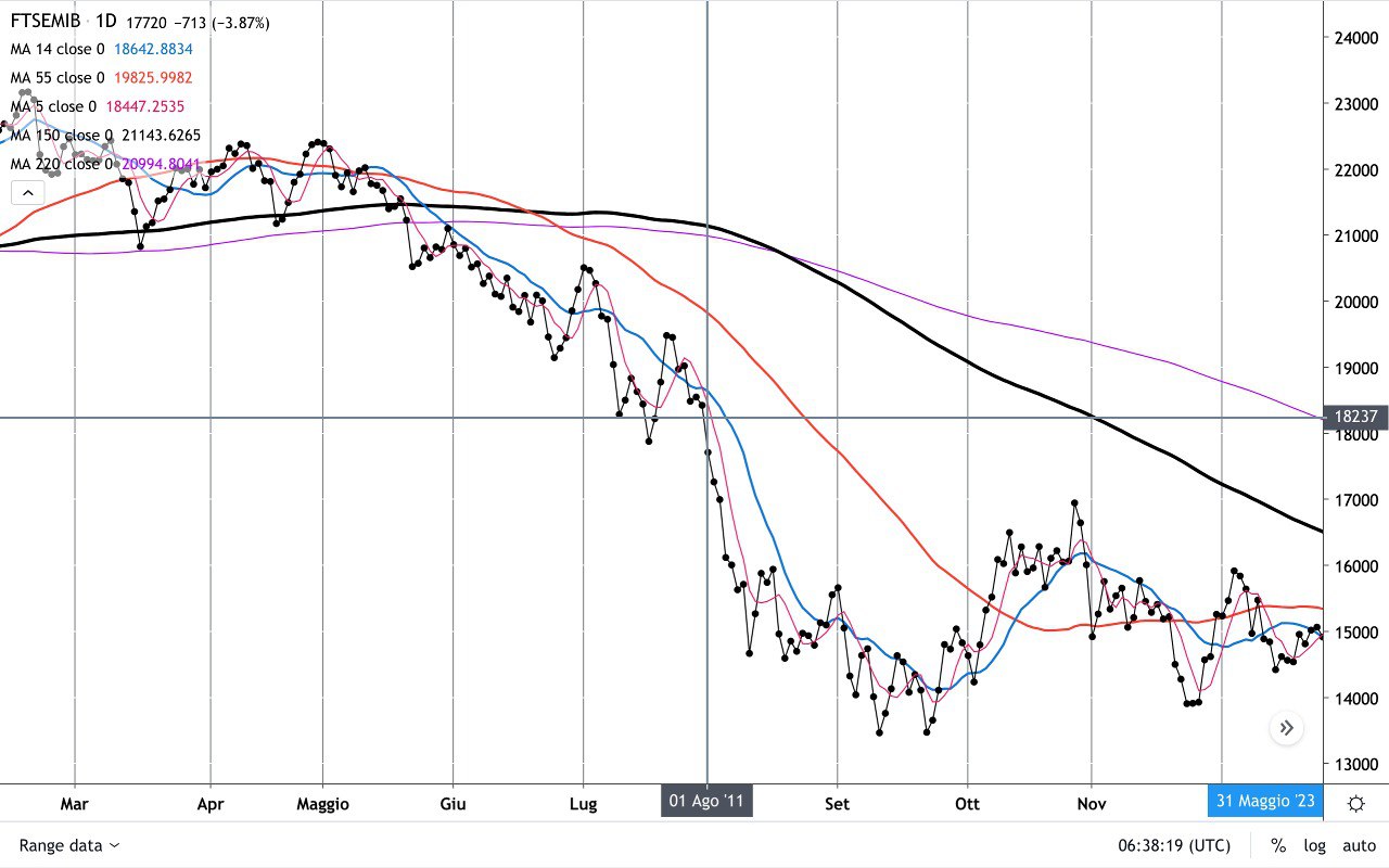 Il giorno 1° Agosto 2011, 12 anni fa, il FTSE MIB iniziò una fase ribassista acuta, accelerando di circa 4000 punti in 8 sedute….