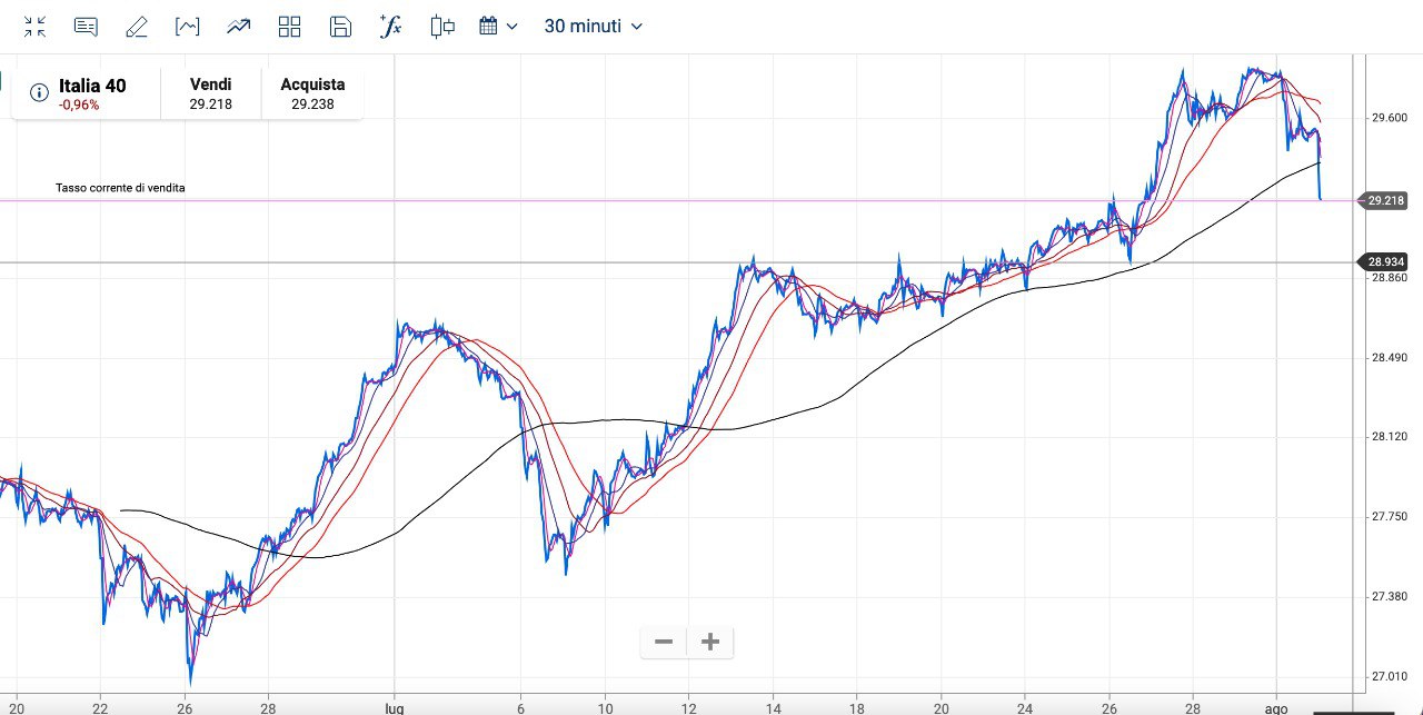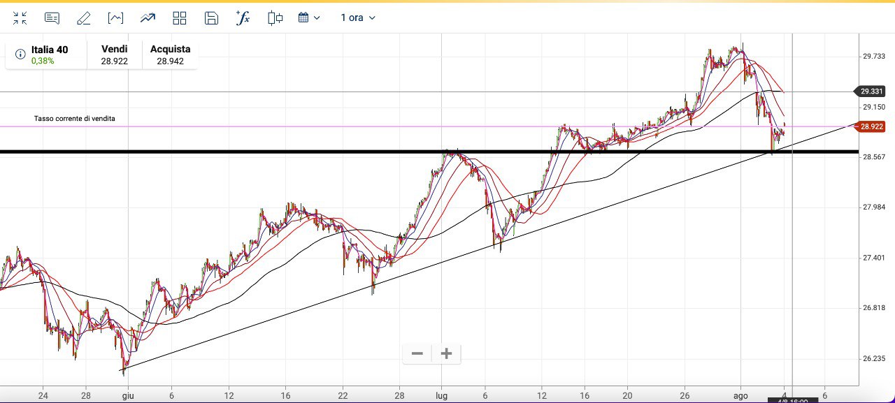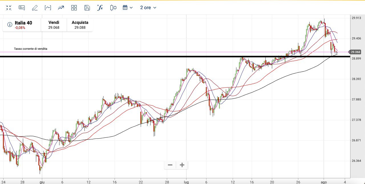 Il MIB invece è quello che sta facendo più fatica a scendere e si trova il SUPPORTO dei 28900-28950 punti.