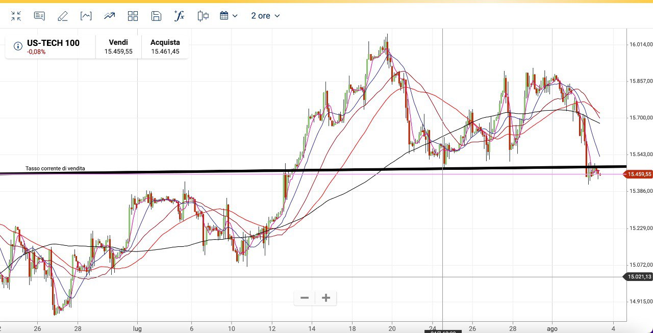Al momento è il NASDAQ 100 l’indice che sta oscillando sotto il SUPPORTO (qui sotto).