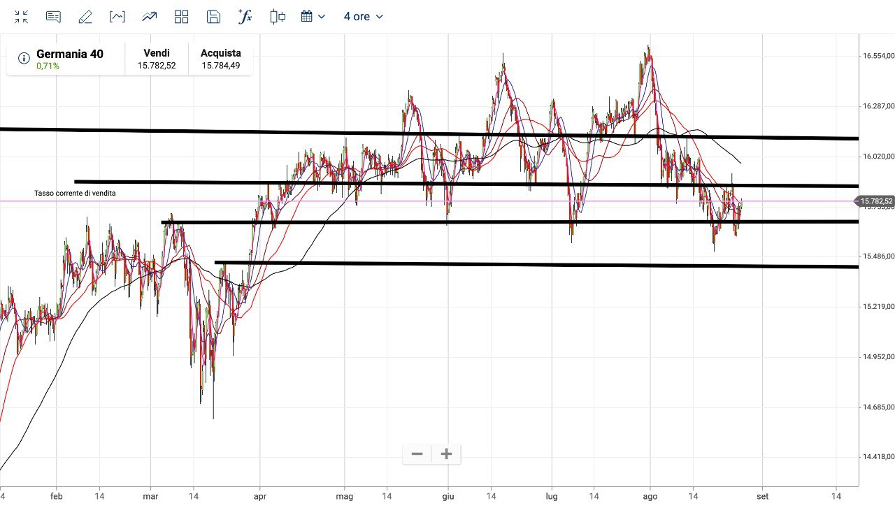 Come sul MIB ha tenuto la soglia dei 28000 punti di FUTURE, sul DAX ha tenuto la soglia dei 15600 punti, ed ora ci siamo riavvicinati ai 15800 punti.