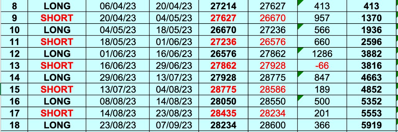 ✅ Parlando di METODOLOGIA dei MINICICLI, chi avesse mantenuto la POSIZIONE al RIALZO che era stata aperta a 28100 e nell’OTTICA della STRATEGIA PILOTA, avrebbe incassato i 1000 punti di take profit a 29100.