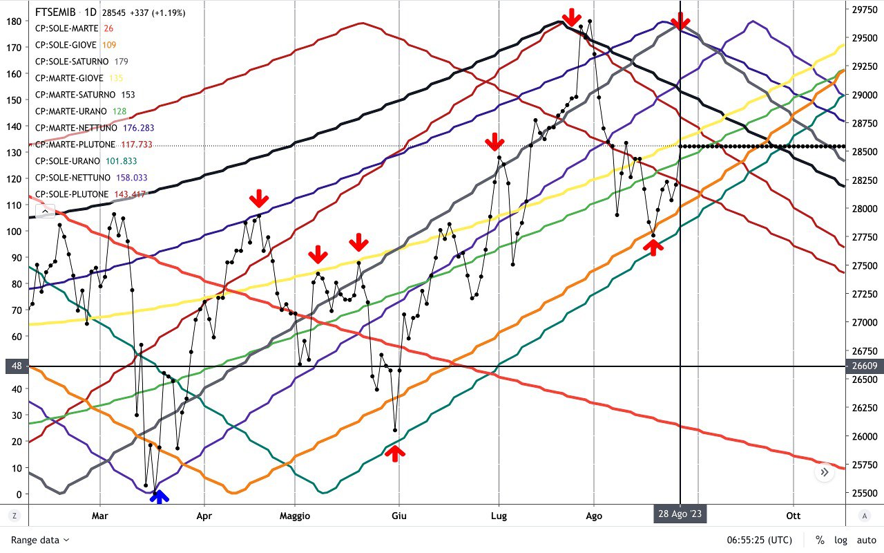 La settimana prossima, sui vari aspetti planetari “testeremo” effettivamente l’andamento del mercato, in particolare sulla CONGIUNZIONE LUNA-GIOVE tra il 4 e il 5 Settembre.