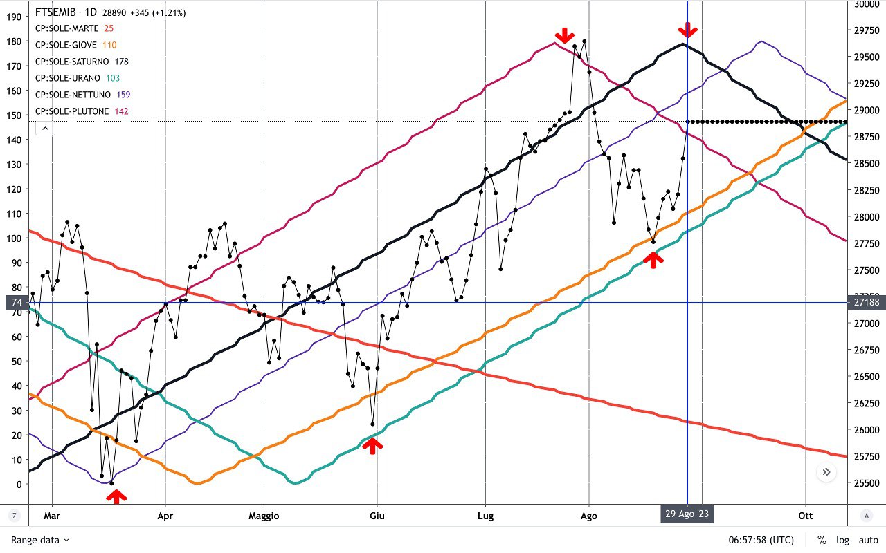 L’accelerazione rialzista di ieri è avvenuta sulla OPPOSIZIONE SOLE-SATURNO, così come l’accelerazione di fine LUGLIO era avvenuta sulla OPPOSIZIONE SOLE-PLUTONE (qualche giorno dopo in realtà).