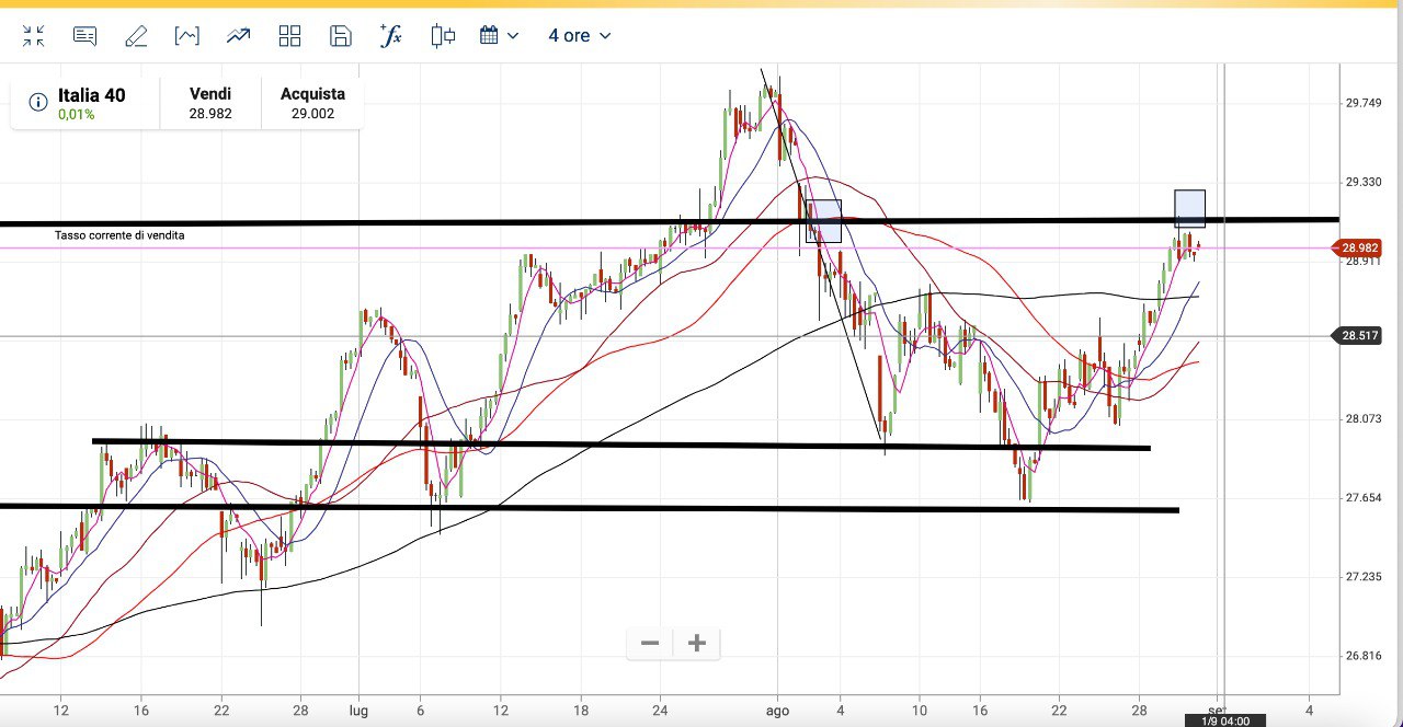 Ma anche chi avesse fatto il BIS, magari partendo dai 28350 punti del giorno 23 Agosto, avrebbe ugualmente colto i suoi 500 punti di take profit.