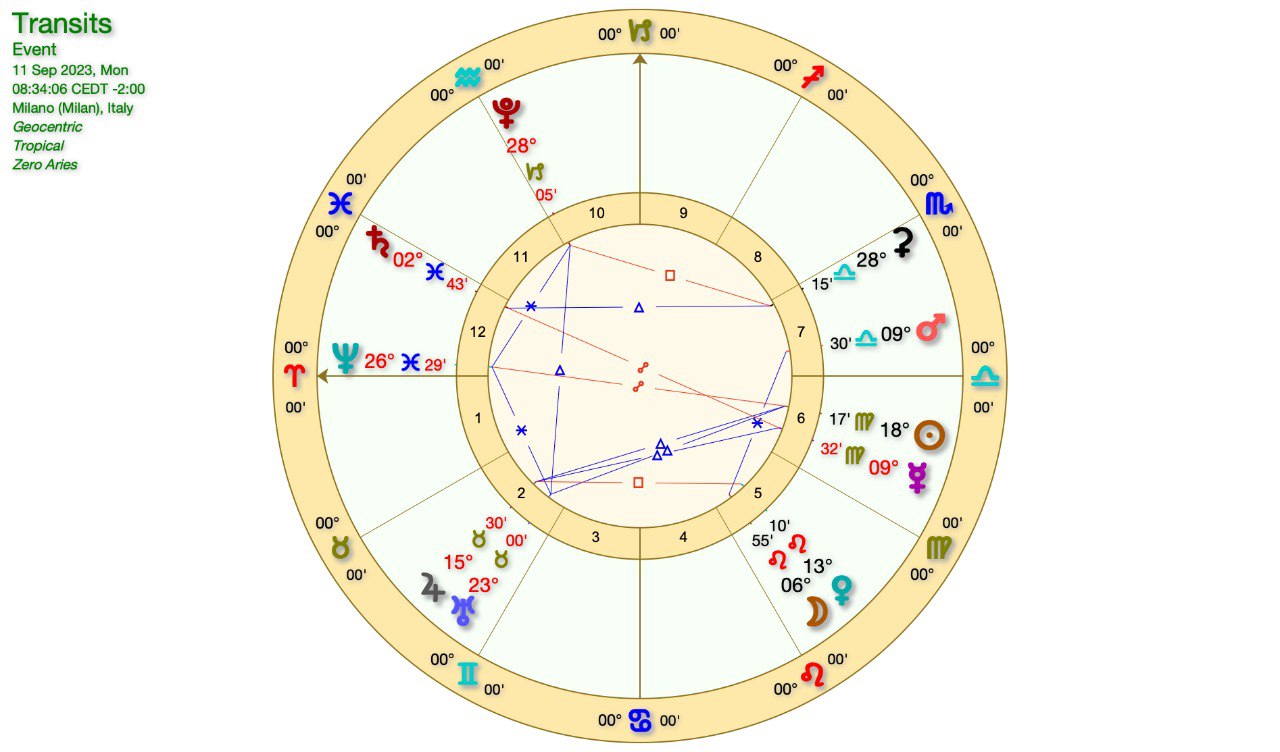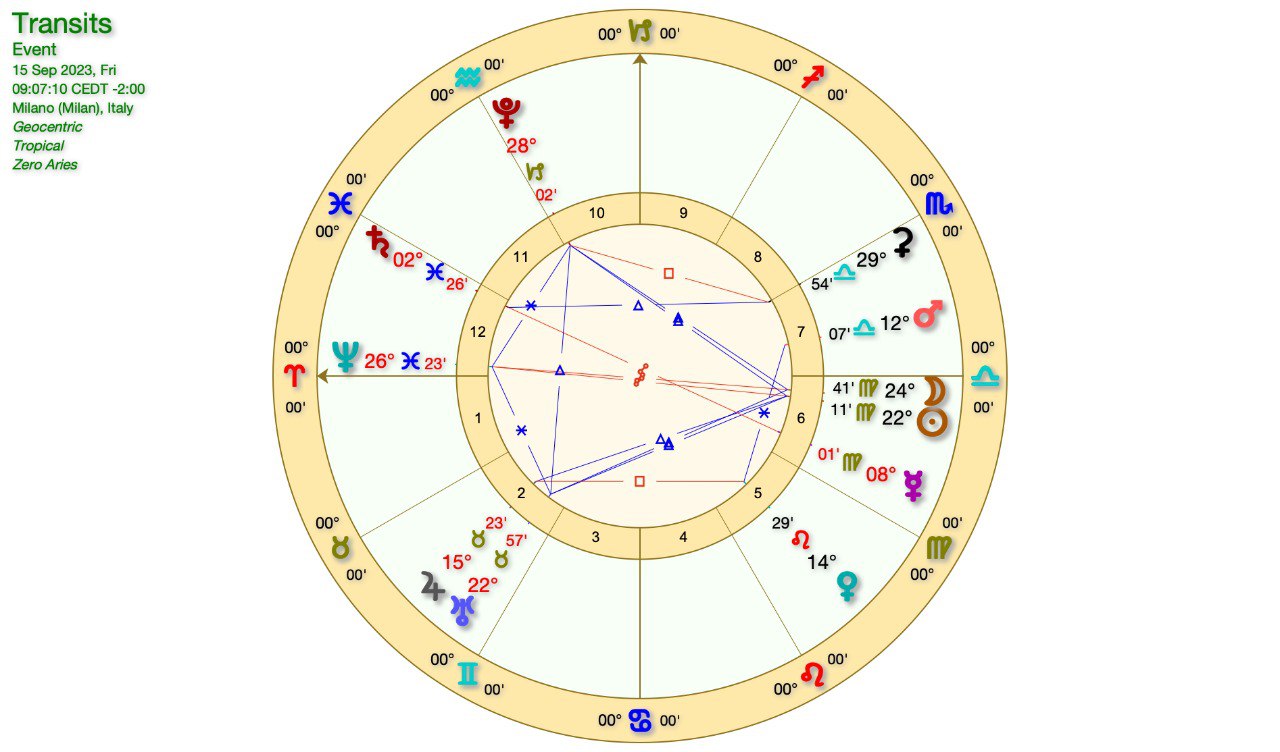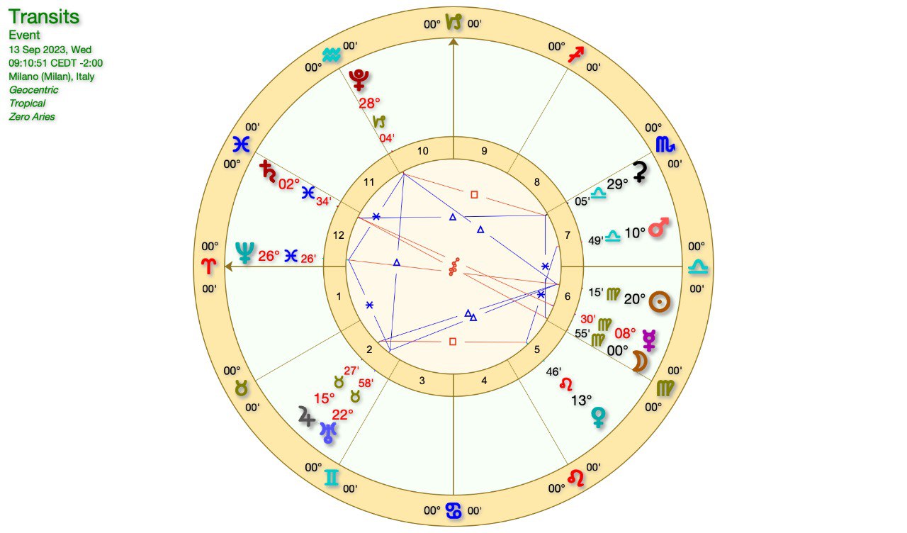 Dal punto di vista planetario, come già argomentato, abbiamo l’importante SET UP del 19 Settembre con l’OPPOSIZIONE SOLE-NETTUNO (ne parlavo ieri pomeriggio).