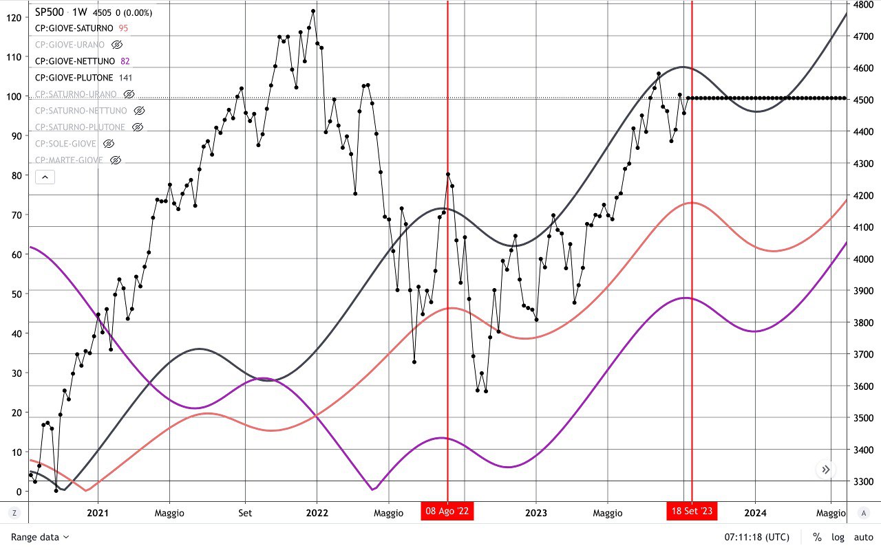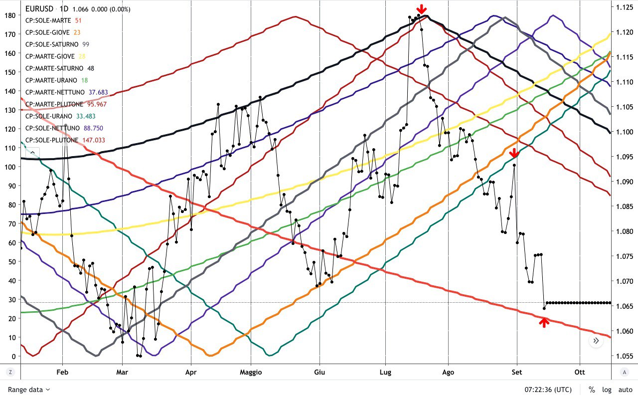 Tale ONDA, partita il 23 Agosto, era stata influenzata dalla OPPOSIZIONE SOLE-SATURNO, che ha portato ad un MASSIMO del mercato attorno al 30 Agosto.