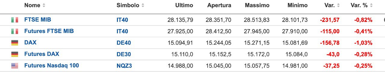 Ieri mattina il MIB future si è avvicinato alla SOGLIA dei 28000 punti (minimo a 28040), senza scendere al di sotto.