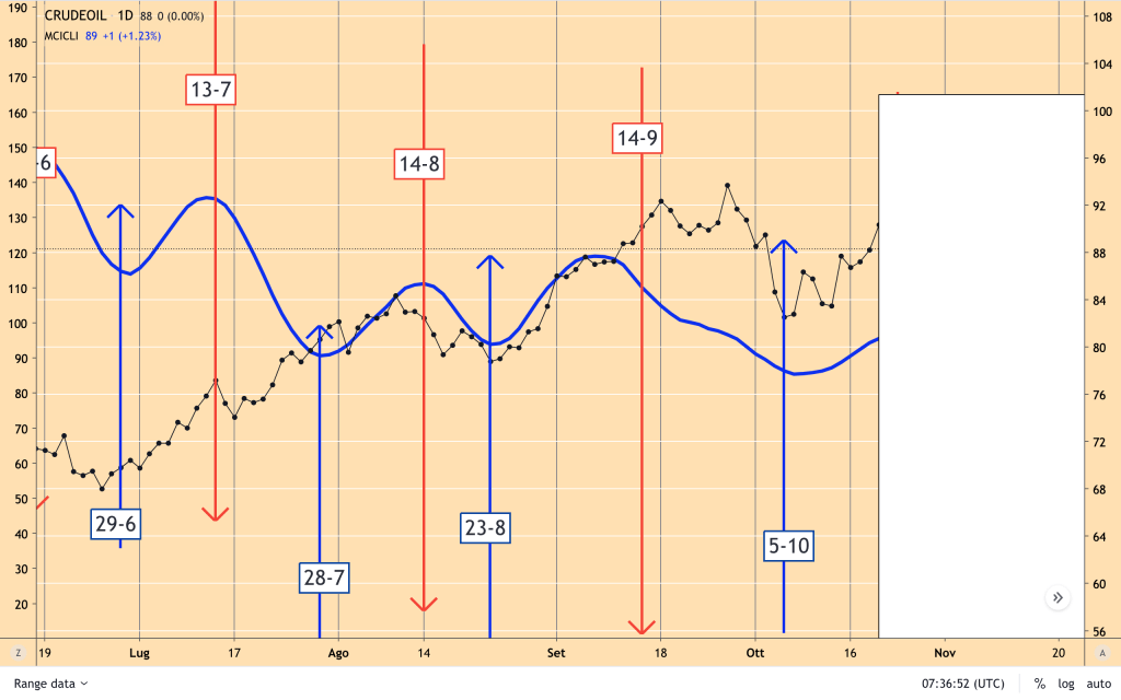 Dal MINIMO del 5 Ottobre il PETROLIO è salito da 82-83 agli attuali 89 dollari.
