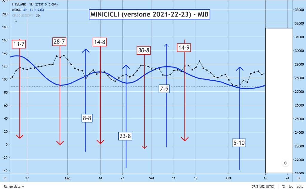 Vi anticipo però che per quanto mi riguarda l’ingresso del SOLE in SCORPIONE (dal giorno 23 Ottobre) è statisticamente piuttosto “pericoloso” per i MINICICLI, di conseguenza bisognerà usare molta prudenza.
