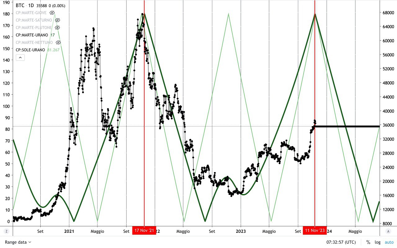 Iniziamo con il CICLO MARTE-URANO sul BITCOIN.