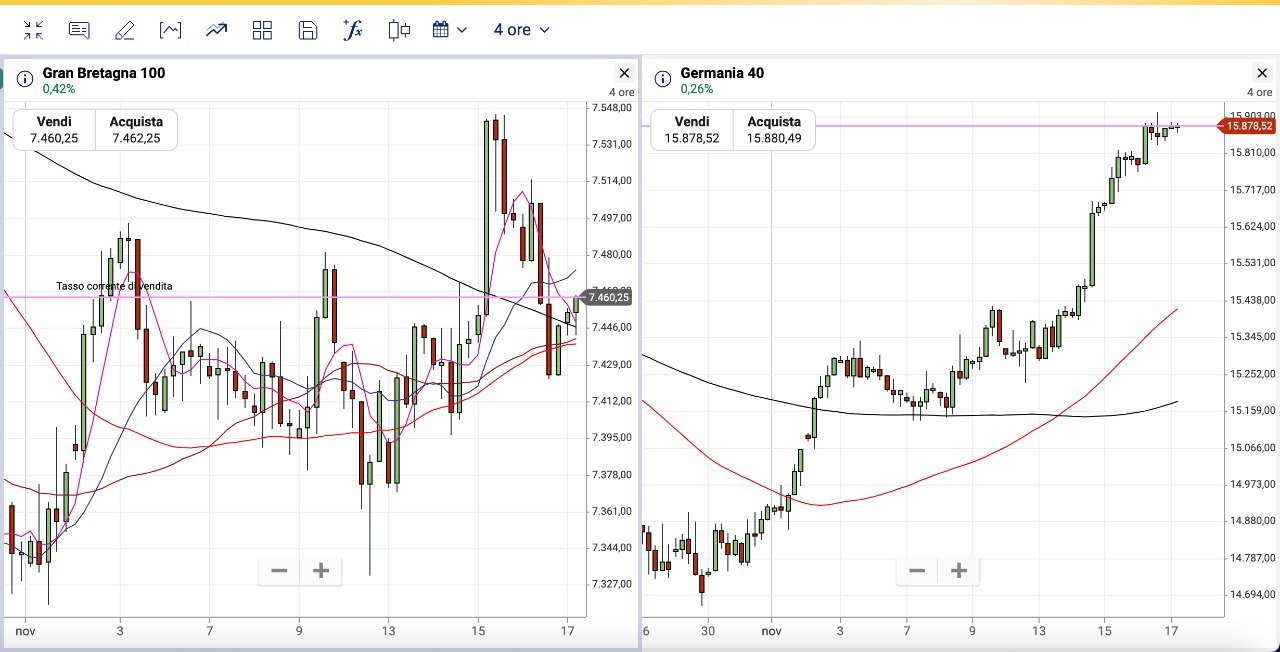 La differenza in questo frangente è tra il FTSE 100 inglese, che spesso anticipa dei movimenti, e il DAX tedesco, che invece sta mostrando una certa forza.