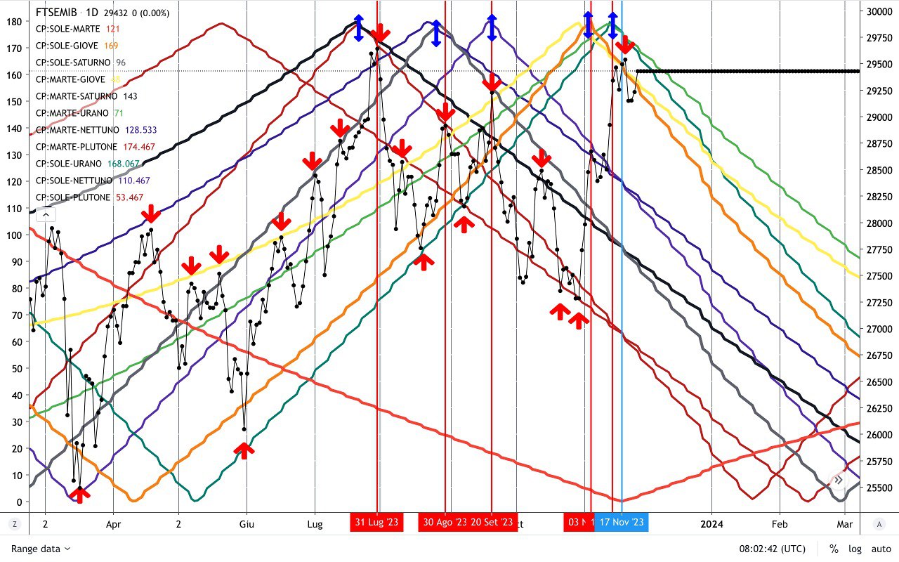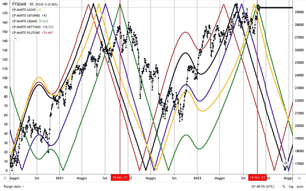 Riprendiamo velocemente la VISIONE dei CICLI SOLARI e di MARTE sul FTSE MIB.