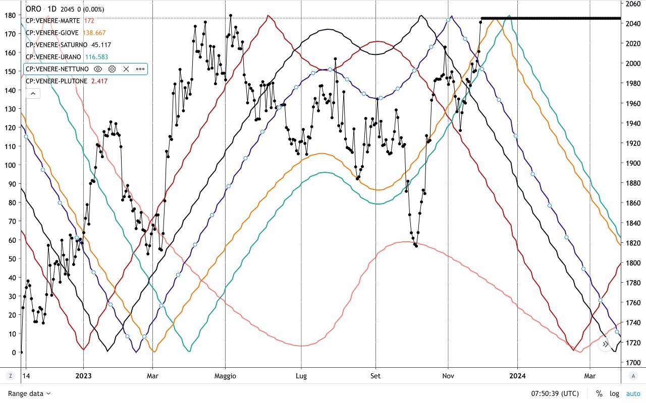 Abbiamo visto assieme a LUIGI che sia i CICLI di MERCURIO che quelli di VENERE (qui sopra) danno delle ottime indicazioni sull’ORO.