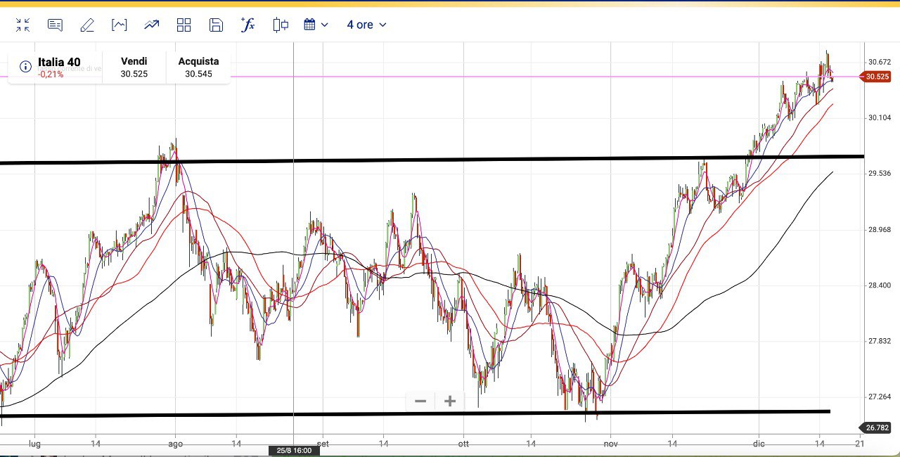 L’ideale, per noi, è che si verificasse effettivamente un ritracciamento dopo i massimi della settimana scorsa fatti sulle scadenze tecniche, che si arrivasse quindi su un supporto importante, e che poi il mercato ripartisse verso l’alto per la prima decade di Gennaio.