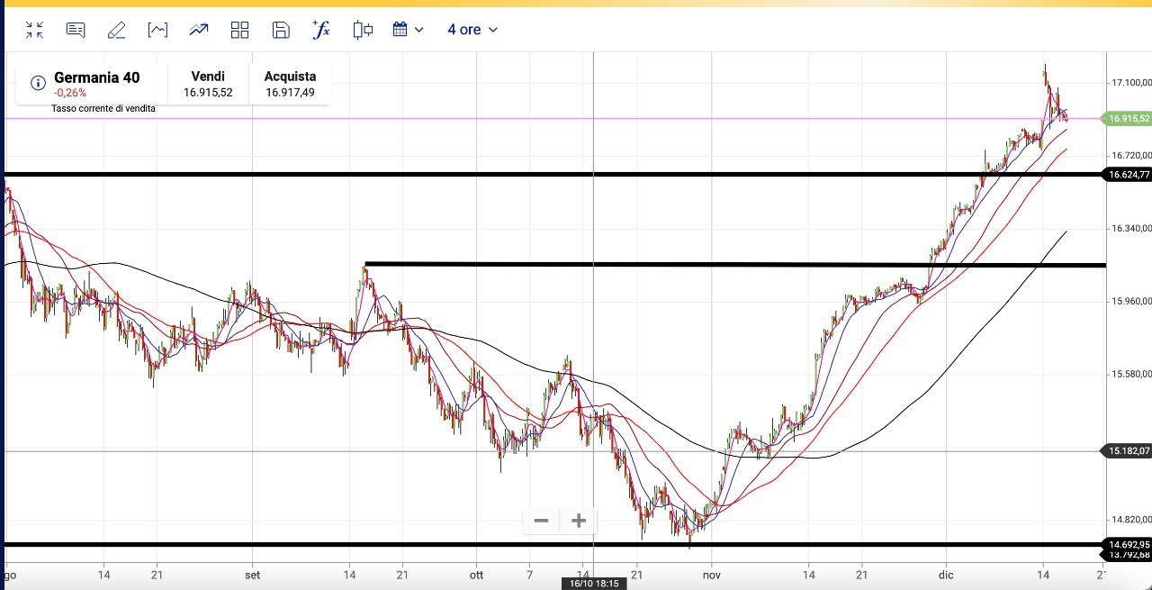 Nel caso specifico, abbiamo un valore di riferimento al RIBASSO su MIB da 30710 punti e su DAX da 17010.