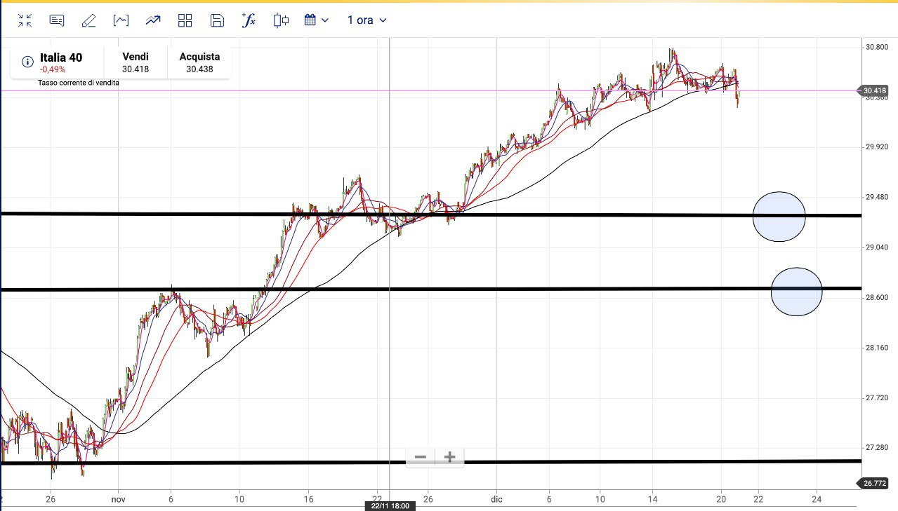 Sempre dal punto di vista delle STRATEGIE, il prossimo take profit si troverebbe sul BIS a 30210 punti (500 punti dall’ingresso) ma ovviamente ciascuno avrà il proprio prezzo di riferimento.
