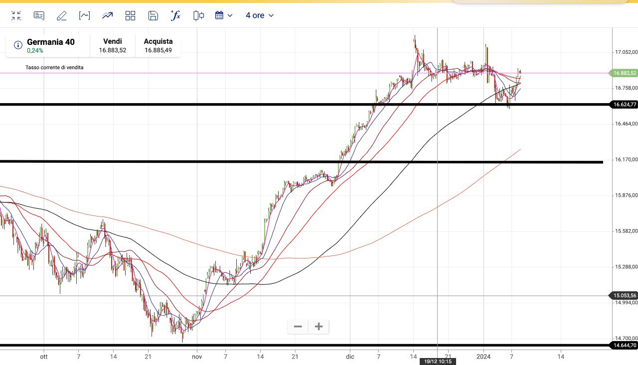 Vediamo anche il DAX, tornato verso i 16900 punti.