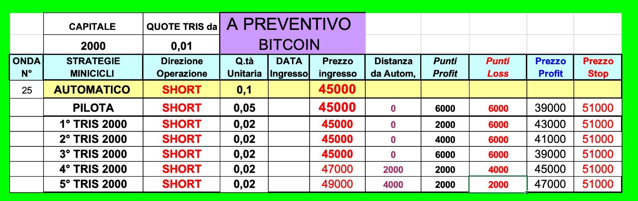 ingresso 1° QUOTA a 45000 / take profit a 43000