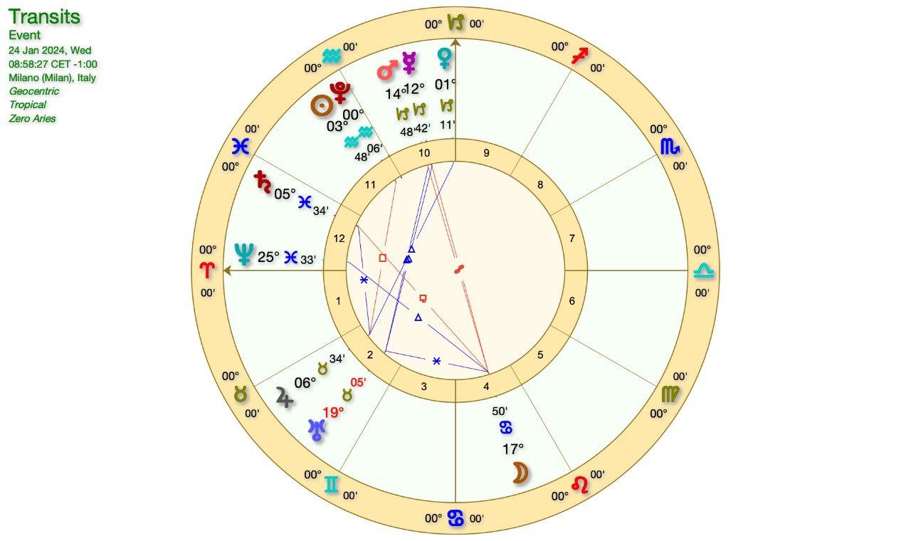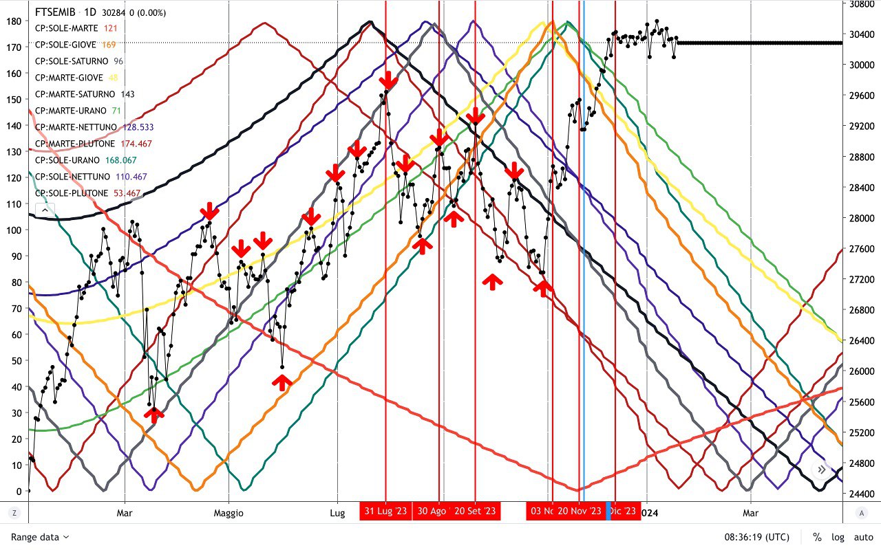 Vi faccio notare però che il SOLE è passato dal CAPRICORNO all’ACQUARIO e che ogni CAMBIO di SEGNO va visto come un potenziale SET-UP di minimo, di massimo o di continuazione.