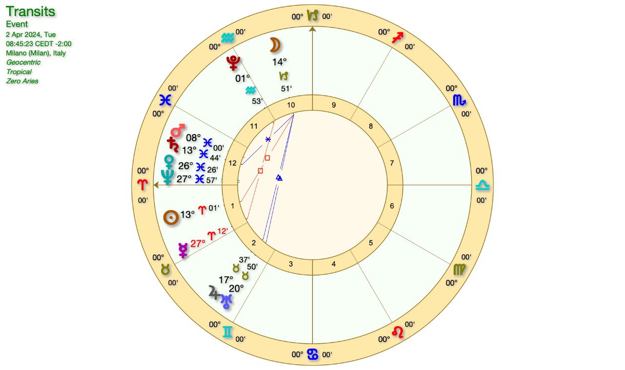 Vi è una certa attesa per l’ECLISSI del 8 Aprile mentre la CONGIUNZIONE GIOVE-URANO in TORO si avvicina velocemente, cosi come siamo già nell’orbita della CONGIUNZIONE MARTE-SATURNO in PESCI e VENERE-NETTUNO.
