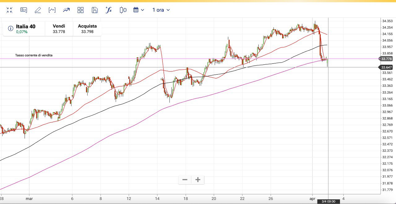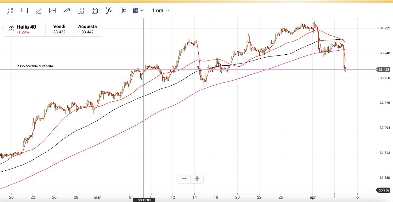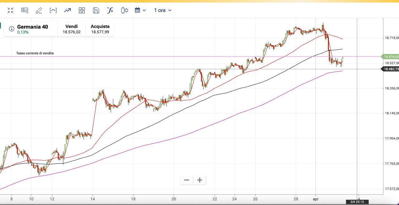 Da verificare dunque se il TREND ha cambiato direzione dopo la discesa di Martedì 2 Aprile, che è stata di 700 punti sul MIB e di 350 punti sul DAX.