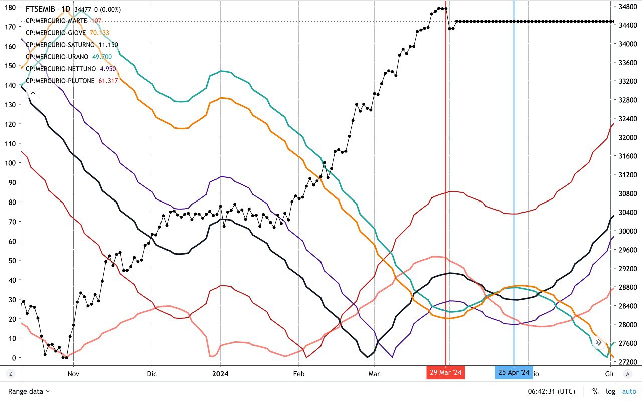 MERCURIO è diventato RETROGRADO il 1° Aprile e il TREND può essere effettivamente cambiato proprio dal 2 Aprile, quando il mercato ha fatto il primo movimento di ritracciamento.