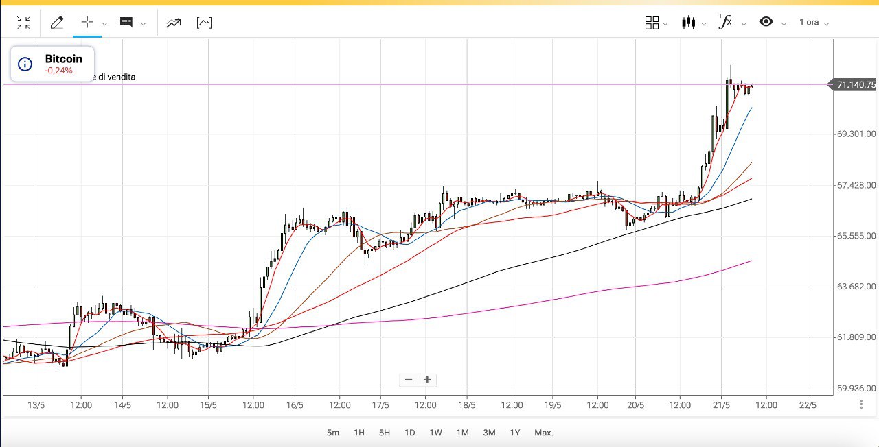 Ieri sera l’accelerazione è stata davvero molto potente, perchè ora il BITCOIN si trova sopra i 71000 dollari.