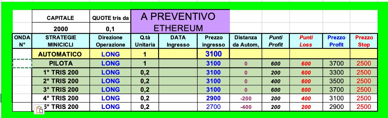 Nell’ottica delle STRATEGIE LONG, qualora si fosse effettivamente entrati a 3100 dollari, sarebbe già scattato il take profit di 600 dollari a 3700 dollari ma chiaramente poi ciascuno valuta come muoversi.