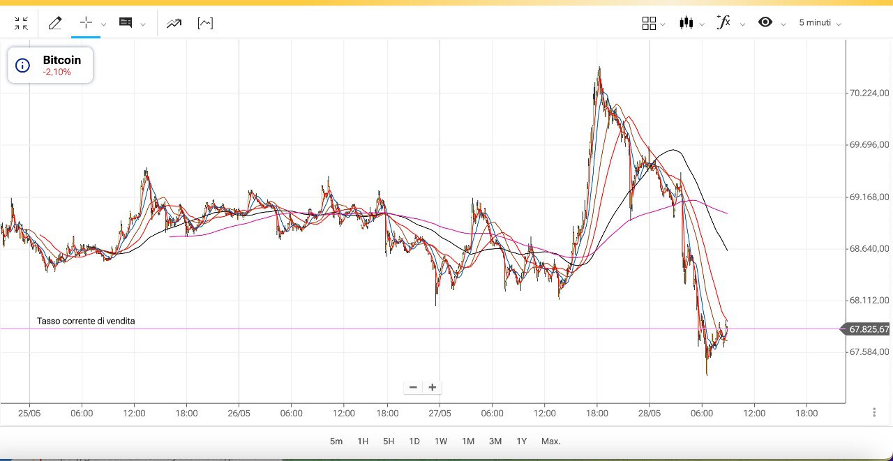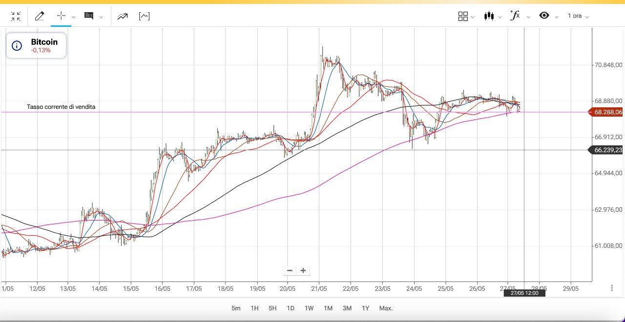 BITCOIN è rimasto un po’ indietro, non ha cioè accelerato al rialzo e staziona ora attorno ai 68500 dollari circa
